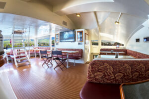 • Air-conditioned Main Salon with Vaulted Ceiling – 49 guests sit down seating for dining